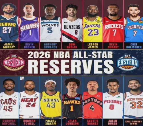 2026年NBA完整全明星陣容公布。 西部首發(fā)東契奇、約基奇、庫里、文班亞馬和亞歷山大;替補愛德華茲、切特、穆雷、布克、阿夫迪亞、杜蘭特和詹姆斯。 東部首發(fā)字母哥、馬克西、布倫森、杰倫-布朗和坎寧安;替補米切爾、唐斯、杰倫-約翰遜、西亞卡姆、鮑威爾、巴恩斯和杜倫。