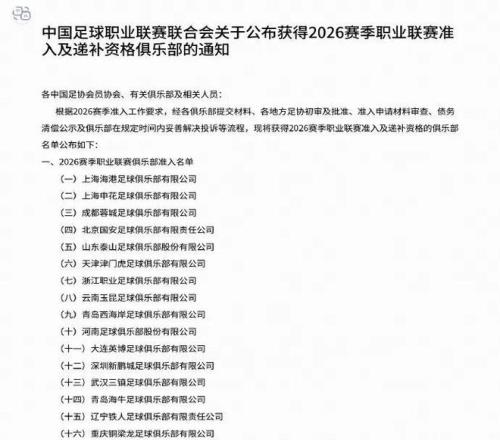海港申花在列,中足聯(lián)公布新賽季準(zhǔn)入名單