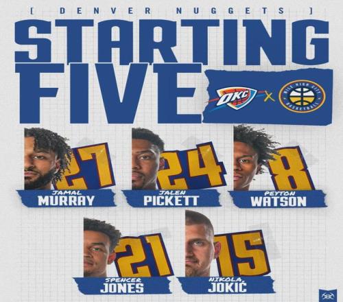 掘金戈登、布勞恩和卡梅倫-約翰遜繼續(xù)休戰(zhàn),雷霆杰倫-威廉姆斯和卡魯索也不能打,兩隊(duì)都不是完整陣容。掘金首發(fā):穆雷、皮克特、斯潘塞-瓊斯、沃特森、約基奇。雷霆首發(fā):亞歷山大、卡森-華萊士、多爾特、霍姆格倫、哈滕。