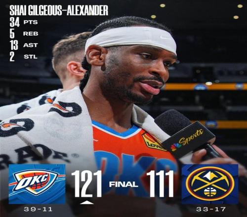 常規(guī)賽,雷霆客場121-111戰(zhàn)勝掘金。 這場比賽的重要性不用多說,兩大MVP候選人亞歷山大和約基奇本賽季第一次正面對話,同時也可能是今年的西決預(yù)演,最終亞歷山大不僅贏下了數(shù)據(jù),還帶走了勝利。