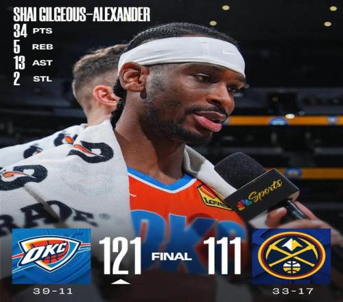 亞歷山大34+13約基奇16分 雷霆勝掘金
