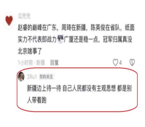 昨天,關(guān)于趙睿與球迷的鬧劇,在網(wǎng)絡(luò)上傳得沸沸揚揚,原因就是北京隊輸給了青島隊之后,有新疆隊球迷表示趙睿的巔峰期已經(jīng)過了,他的巔峰期在廣東隊。同時,還認(rèn)為北京隊周琦等主力球員,同樣是過了巔峰期,因此,本賽季CBA總冠軍, 應(yīng)該還是廣廈隊的,北京隊想要奪冠,基本是不可能。