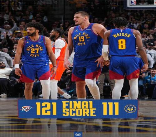 常規(guī)賽,掘金主場111-121不敵雷霆。 這是兩隊本賽季的第一次交手,掘金幾乎完敗,別看最終的分差只有10分,掘金全場沒有領(lǐng)先過1秒鐘,且整個第四節(jié)分差都在兩位數(shù)。