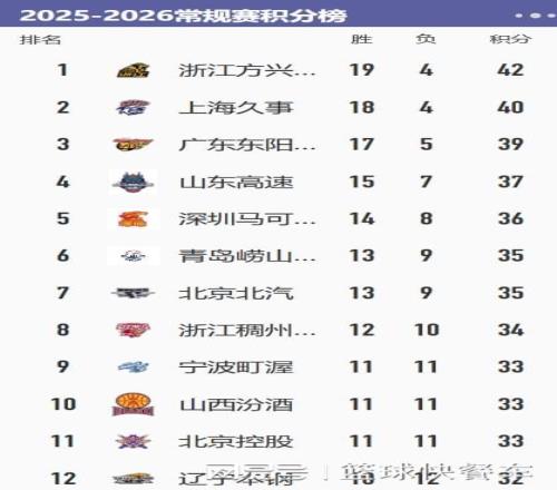 CBA積分榜最新排名出爐!廣廈爆冷輸球排第1:廣東第3遼籃第12