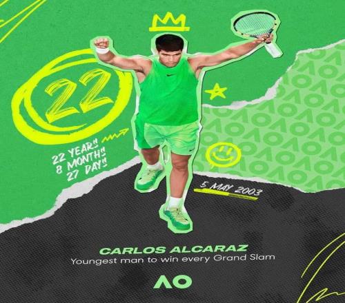 “我更希望贏得澳網(wǎng)完成全滿貫,成為史上最年輕的達(dá)成者,而不是今年去拿另外三個(gè)冠軍?!?/p> 阿爾卡拉斯想要,阿爾卡拉斯得到。 22歲零272天,2026年澳大利亞網(wǎng)球公開賽,羅德拉沃爾球場(chǎng),阿爾卡拉斯成為網(wǎng)球歷史上第九位贏得全部四大滿貫賽事的男子選手,同時(shí)也是史上最年輕的全滿貫選手。 他在決賽中戰(zhàn)勝了賽會(huì)十冠王德約科維奇,小德澳網(wǎng)決賽百分百勝率的金身就此打破。