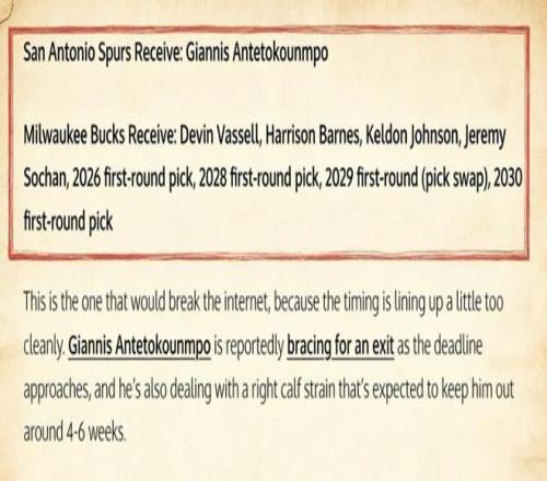 8換1!美媒建議馬刺加入字母哥爭奪戰(zhàn),聯(lián)手文班亞馬,即刻沖冠