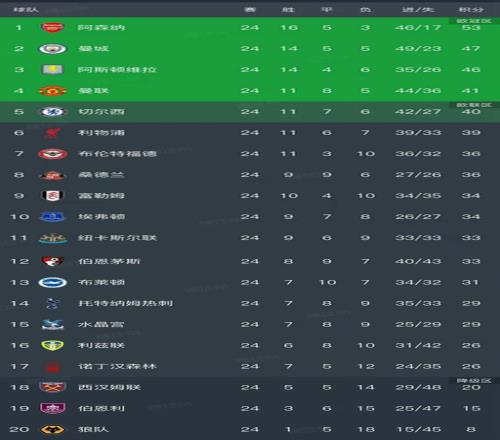 英超是五大聯(lián)賽爭(zhēng)冠最激烈的聯(lián)賽之一,但本賽季的爭(zhēng)冠格局已經(jīng)發(fā)生了很大的變化,截至第24輪,我們看看最新積分榜的變動(dòng)!  英超最新積分榜