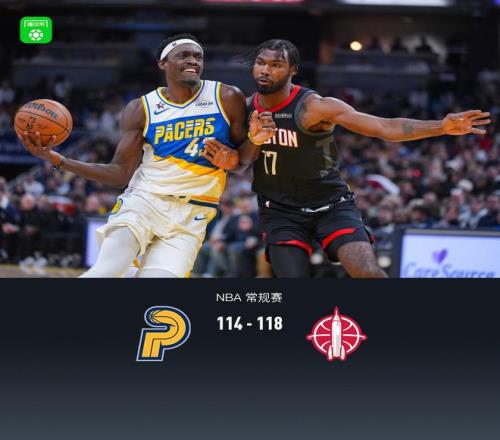 第一節(jié)步行者內史密斯拿下8分,火箭申京拿下11分,首節(jié)戰(zhàn)罷步行者28-24領先火箭 第二節(jié)步行者西亞卡姆拿下7分,火箭申京拿下10分,半場結束步行者56-63落后火箭 第三節(jié)步行者西亞卡姆拿下10分,火箭申京拿下10分,第三節(jié)結束步行者87-87火箭 第四節(jié)步行者馬圖林拿下12分,火箭申京拿下8分,最終步行者114-118不敵火箭