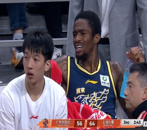 薩姆納連續(xù)取分穩(wěn)住局面,白邊又連續(xù)取分,他已經(jīng)完全適應(yīng)CBA的節(jié)奏。張鎮(zhèn)麟再中三分,成為首個(gè)得分上雙的本土球員??蛲饩€給出回應(yīng),目前奎因7中1的投籃效率。白邊只手遮天單臂暴扣??蛟僦腥郑坪跛惨庾R到不能硬剛對手內(nèi)線,要在外線尋找機(jī)會。張鎮(zhèn)麟外線還進(jìn),解說直呼“我的天吶!” 張皓嘉和古德溫互相推搡,各有倒地,張皓嘉領(lǐng)到技術(shù)犯規(guī)。上半場廣東隊(duì)30比51落后。薩姆納已經(jīng)16分5籃板;客隊(duì)張鎮(zhèn)麟命中五記三分得到15分,白邊16分8籃板,洛夫頓10分。 易邊再戰(zhàn),焦泊喬前場籃板率先取分,薩姆納和白邊對膝碰撞。薩姆納里突外投連續(xù)取分,以一己之力持續(xù)追分。胡明軒三分也進(jìn),個(gè)人首次得分。打出13比2的沖擊波??虻娜忠策M(jìn),杜潤旺連續(xù)三分還進(jìn),單節(jié)主隊(duì)打瘋了,下起了三分雨。洛夫頓終于外線給出回應(yīng)。王少杰跟進(jìn)暴扣取分,奎因三分再中。三節(jié)戰(zhàn)罷,廣東隊(duì)落后12分。本節(jié)當(dāng)中薩姆納也出現(xiàn)拉傷情況,球隊(duì)單外援出戰(zhàn)。