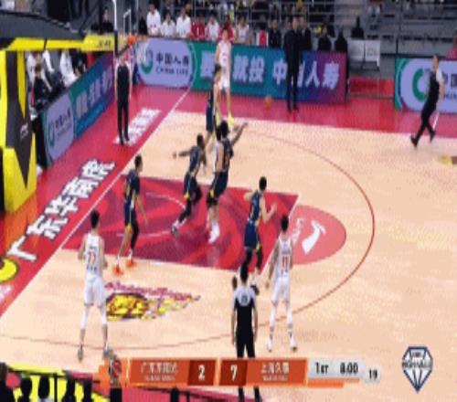 后半節(jié)雙方二陣容比拼,王哲林中投+空切暴扣+吃餅連得6分,薩姆納奎因打出空接連線后廣東連續(xù)出現(xiàn)失誤,上海一口氣領(lǐng)先來(lái)到21-9,杜鋒終于喊出暫停。