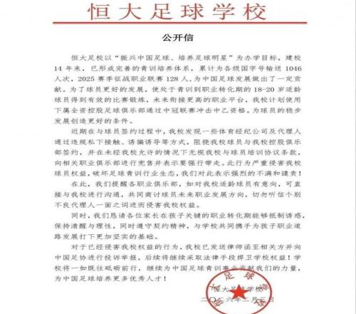 青訓(xùn)精英遭哄搶拒絕為他人做嫁衣!罕見(jiàn),恒大足校公開(kāi)發(fā)文譴責(zé)