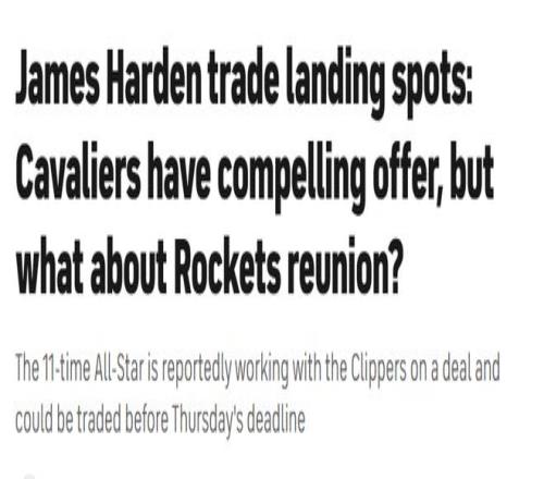 不過(guò),越深入分析就越會(huì)發(fā)現(xiàn),這筆交易其實(shí)暗藏合理性。加蘭職業(yè)生涯一直飽受傷病困擾,上賽季才首次出戰(zhàn)70場(chǎng)比賽,隨后又因腳趾傷勢(shì)在季后賽中表現(xiàn)掙扎。這一傷勢(shì)不僅讓他缺席了本賽季初的多場(chǎng)比賽,即便傷愈復(fù)出,競(jìng)技狀態(tài)也大打折扣。自1月15日以來(lái),加蘭便再未登場(chǎng)。他的合同還剩兩年頂薪,今年夏天即可觸發(fā)提前續(xù)約條款。如果騎士隊(duì)對(duì)他的健康狀況和競(jìng)技狀態(tài)存疑,交易他便是必然之舉。 但絕大多數(shù)交易方案都會(huì)損害球隊(duì)本賽季的陣容深度。老鷹隊(duì)此前就不得不送走特雷-楊,以此清理薪資空間。騎士隊(duì)希望在本賽季沖擊總冠軍,但如今的聯(lián)盟,身高偏矮的后衛(wèi)球員普遍不受青睞。因此,騎士隊(duì)若想通過(guò)交易加蘭換取相對(duì)理想的回報(bào),最佳選擇或許是換得另一位后衛(wèi)。 莫蘭特投射能力不足,對(duì)騎士隊(duì)而言絕非合適人選;拉梅洛-鮑爾雖在賽季初卷入交易流言,但如今黃蜂隊(duì)勢(shì)頭正盛,并不愿放手。騎士的選擇本就寥寥無(wú)幾,而哈登的出現(xiàn)恰好填補(bǔ)了這一空缺。 盡管哈登顯然不是騎士隊(duì)的長(zhǎng)期建隊(duì)核心,但至少他的即戰(zhàn)力要優(yōu)于本賽季狀態(tài)低迷的加蘭。全聯(lián)盟范圍內(nèi),騎士隊(duì)能用以交易加蘭、且不會(huì)削弱本賽季陣容實(shí)力的球員,寥寥無(wú)幾,哈登便是其中之一。當(dāng)然,如果騎士隊(duì)能更早著手處理加蘭的交易,局面或許會(huì)有所不同。 但如今,諸如交易得到特雷-墨菲這類設(shè)想早已化為泡影,哈登已是騎士隊(duì)的最優(yōu)解。騎士隊(duì)本可以通過(guò)交易加蘭換取選秀權(quán),但這樣做大概率需要接手溢價(jià)合同。這筆交易確實(shí)存在長(zhǎng)期風(fēng)險(xiǎn),但從短期來(lái)看,它能讓騎士隊(duì)繼續(xù)留在爭(zhēng)冠行列。 考慮到哈登的洛杉磯出身,他會(huì)在克利夫蘭過(guò)得開心嗎?這很難說(shuō)。不過(guò),J.R.史密斯的先例曾轟動(dòng)一時(shí)——他曾坦言,“克利夫蘭沒有夜生活,沒有燈紅酒綠,能做的只有打游戲、練籃球、打比賽”?;蛟S哈登也能從中受益。如果他志在沖擊總冠軍,轉(zhuǎn)戰(zhàn)東部賽區(qū)通常會(huì)讓目標(biāo)更容易實(shí)現(xiàn),況且騎士隊(duì)的陣容本就具備爭(zhēng)冠實(shí)力。 休斯頓火箭隊(duì) 這并非哈登首次試圖重返休斯頓,他曾多次傳出可能回歸火箭的流言。但最近一次,火箭隊(duì)選擇利用薪資空間簽下范弗利特作為球隊(duì)主控,這讓哈登陷入了兩難境地。在自由球員市場(chǎng)上,哈登未能找到心儀的下家,最終只能執(zhí)行在76人隊(duì)的球員選項(xiàng),隨后迫使球隊(duì)將自己交易至快船。
