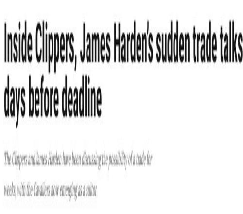 北京時間2月3日,美媒ClutchPoints報道了騎士和快船關于哈登交易談判的更多內幕,具體如下——