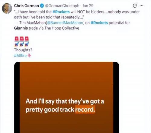 早些時候,ESPN記者布蘭德·麥克馬洪個人播客節(jié)目中明確表示: “我只想告訴你們,揚尼斯加盟火箭的事情根本不可能,火箭對于現(xiàn)有陣容擁有著足夠的耐心?!?/strong> 此話一出,直接讓那些幻想火箭打包大把籌碼拿下字母哥的聲音全部安靜。緊接著,布蘭德·麥克馬洪又一次為這個話題加了一把鎖: “我聽說火箭根本不會去報價字母哥,雖然沒有人說這是確切消息,但我已經很多次聽到類似的內部消息了?!?/strong> 言下之意就很直接了,火箭管理層根本不打算輕易動用目前的年輕核心班底。
