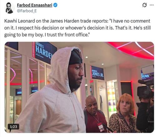 ESPN名記Shams隨后發(fā)文確認(rèn)消息真實(shí)性,同時(shí)跟進(jìn)表示哈登與快船雙方都在討論能否在交易截止日前離隊(duì),并且雙方都在尋找感興趣的下家進(jìn)行討論。