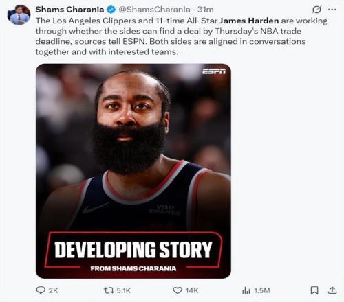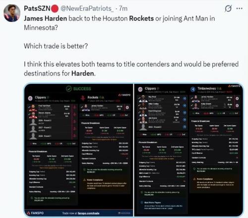 火蜜紛紛發(fā)聲樂(lè)意看到哈登回歸!休媒曬巔峰照歡迎:模擬5換1方案