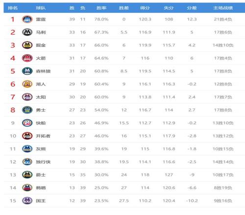 鵜鶘輸球后13勝39負,繼續(xù)排名西部第14。 今日比賽后獨行俠、灰熊排名互換,其他西部球隊排名不變。