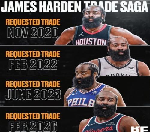 2021年的時候,他從火箭申請交易到籃網(wǎng)。 22年申請交易,從籃網(wǎng)到費城;23年申請交易,從費城到快船。 這次交易,是哈登五年來的第四次。