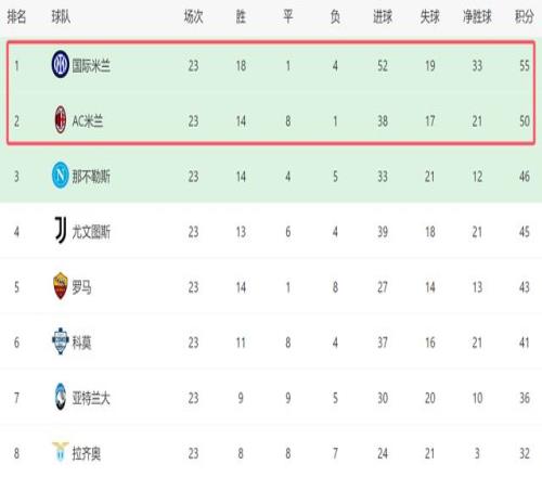 本場(chǎng)過后,AC米蘭在意甲迎來22輪不敗,首輪在主場(chǎng)意外輸給克雷莫內(nèi)塞之后,AC米蘭在意甲再無敗績(jī),期間他們?nèi)〉?4勝8平的成績(jī)。在積分榜上,AC米蘭以50分排名第二,落后榜首的國米5分。盡管那不勒斯已經(jīng)開始掉隊(duì),但是意甲還有AC米蘭能夠給國米制造威脅,本賽季爭(zhēng)冠還有很大的變數(shù)。