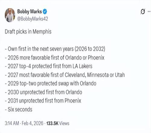 根據(jù)薪資結(jié)構(gòu)專家鮑比-馬克斯的說(shuō)法,灰熊隊(duì)通過(guò)這筆交易還創(chuàng)造了NBA歷史最大的交易特例價(jià)值2880萬(wàn),灰熊隊(duì)在得到三個(gè)首輪簽后,未來(lái)7年也囤積了12個(gè)首輪簽+6個(gè)次輪簽(他此前說(shuō)是13個(gè)首輪簽,后更改為12個(gè)+1互換),首輪簽數(shù)量?jī)H次于籃網(wǎng)、雷霆。 灰熊有自己2026-2032年7個(gè)首輪簽; 2026年灰熊/太陽(yáng)排名靠前的首輪簽; 2027年湖人前四保護(hù)首輪; 2027年爵士/騎士/森林狼靠前的首輪簽; 2029年魔術(shù)首輪互換; 2023年魔術(shù)首輪簽; 2031年太陽(yáng)首輪簽; 灰熊還有6個(gè)次輪簽。 |