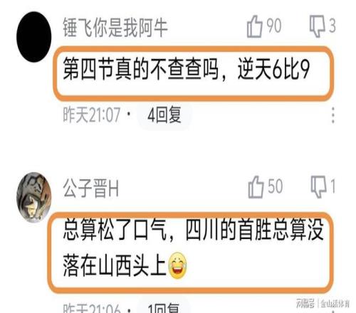末節(jié)雙方打了個(gè)6-9比分,賽后網(wǎng)友們也是紛紛吐槽道“第四節(jié)真的不查查嗎,逆天6比9?!保弧翱偹闼闪丝跉?,四川的首勝總算沒落在山西頭上”;“好一個(gè)6-9,這不是你想的那個(gè)69式,而是中國職業(yè)籃球第一聯(lián)賽單節(jié)得分,牛的嘞!”;“我讓我村里打球賽的朋友上去打也不止這個(gè)分?jǐn)?shù)”;“單節(jié)6-9,跟韓國6分鐘多鐘不得分一樣離譜”;“單節(jié)兩隊(duì)6-9,是職業(yè)球員干的事嗎?”……
