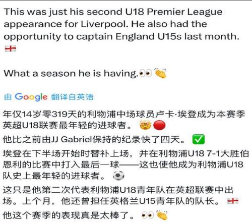 點(diǎn)評(píng)人:淡然微笑 青訓(xùn)營(yíng)的超級(jí)跳級(jí)生盧卡·埃登(Luca Eden),未滿15歲之前在u18登場(chǎng)并打入一球,可以說是青訓(xùn)罕見的梯隊(duì)一路上來能超級(jí)跳級(jí)的小朋友,這視頻里看得出控球能力不錯(cuò),對(duì)方更年長(zhǎng)身材更高大的球員一直想用身體碾壓小埃登,但是效果并不太好。 之前說到過,對(duì)比像曼城和切爾西甚至埃弗頓的尖子青訓(xùn)球員,利物浦在過去很多年一直沒有身體很好的類型(這里指一路梯隊(duì)上來的,然而實(shí)際上買到的小盆友們橫向?qū)Ρ纫膊凰闵眢w特別好)這次小埃登算是在身體和技巧端直接跳了好幾級(jí)。 所以不能免俗的青訓(xùn)梯隊(duì)+超級(jí)跳級(jí)生+8號(hào)小伙伴們應(yīng)該知道他被吹捧為小誰(shuí)了吧當(dāng)然圖二這一招一式和神態(tài)還真有那么點(diǎn)意思。 |