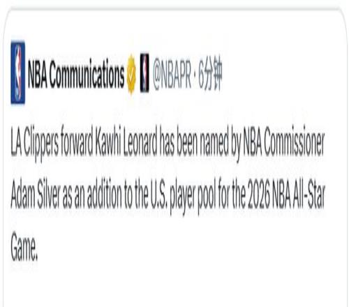 北京時(shí)間2月4日,洛杉磯快船隊(duì)前鋒科懷-萊昂納德,已由NBA總裁亞當(dāng)-蕭華宣布增補(bǔ)入選2026年全明星賽美國(guó)隊(duì)球員大名單。