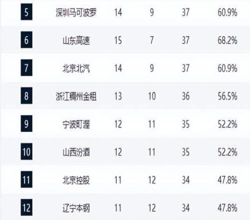 北京隊穩(wěn)居第7(14勝9負),雖未沖頂,但保持穩(wěn)定;山東隊(15勝7負)緊隨其后,成為北方賽區(qū)另一支不可忽視的力量。浙江隊(13勝10負)位列第8,外線火力持續(xù)輸出,季后賽席位漸穩(wěn)。