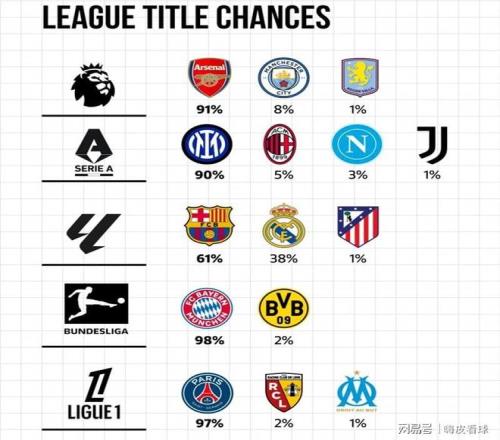 五大聯(lián)賽奪冠分析:阿森納首冠將至,巴黎拜仁最穩(wěn),皇馬不足五成