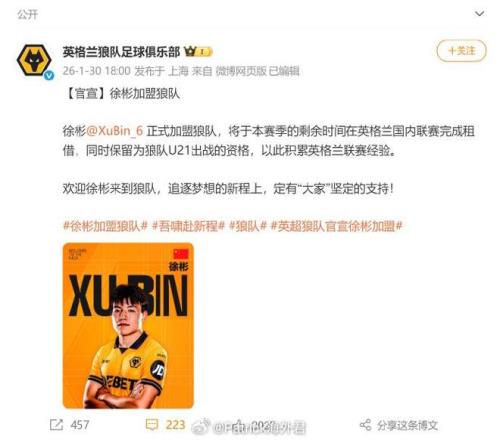 博主:英職業(yè)轉(zhuǎn)會(huì)窗已關(guān)閉,若徐彬仍是自由身則還有轉(zhuǎn)會(huì)機(jī)會(huì)