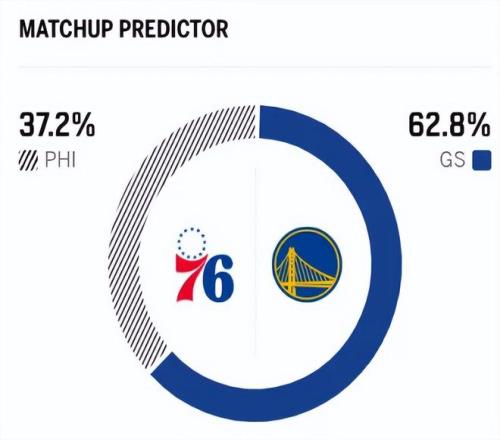 這是兩隊(duì)本賽季的第二次交手,上一次在76人主場的交鋒中,勇士以1分之差憾負(fù)。賽前,美媒ESPN對本場比賽進(jìn)行了勝率預(yù)測,勇士隊(duì)勝率意外高達(dá)62.7% ,優(yōu)勢明顯,76人隊(duì)勝率則僅為37.3% ,讓人詫異 。