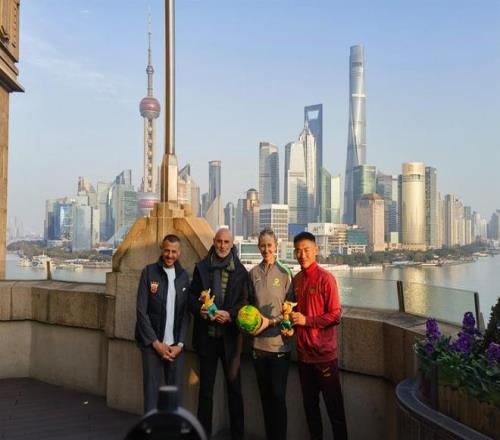 穆斯卡特及海港助理教練和澳大利亞女足前國(guó)腳格蕾絲、中國(guó)男足助理教練于漢超等合影。 3月,澳大利亞足球有志于變身“體育外交”的紐帶——3月1日,亞足聯(lián)女足亞洲杯在澳大利亞悉尼、珀斯及黃金海岸開(kāi)打,12支參賽球隊(duì)中包括由澳大利亞籍主帥米里西奇執(zhí)教的中國(guó)女足。四年前,水慶霞率領(lǐng)中國(guó)女足在印度女足世界杯神奇奪冠,四年后,鏗鏘玫瑰將在澳大利亞走上衛(wèi)冕之路。