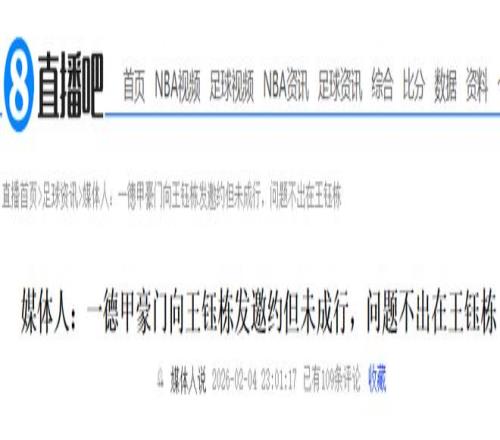 就在剛剛,2月4日晚上,傳來(lái)王鈺棟留洋消息,一家德甲豪門發(fā)邀約