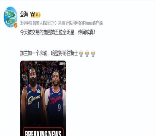 1換2大交易!哈登加盟騎士!國內(nèi)名嘴熱議,字母哥下家也浮出水面