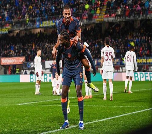 第57分鐘,國(guó)米防線出現(xiàn)一次溝通失誤。德弗賴(lài)上搶被擺脫,都靈迅速轉(zhuǎn)移到右路傳中,臨時(shí)回撤到中衛(wèi)位置的弗拉泰西被庫(kù)倫諾維奇搶點(diǎn)頭球破門(mén),比分變?yōu)?-1。