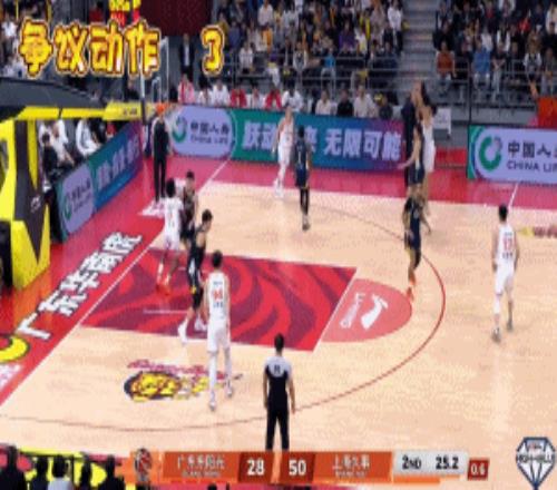 1分鐘后陳家政繼續(xù)緊逼貼身防守古德溫,古德溫憤怒地推開了陳家政的手臂,之后在擺脫過程中古德溫右手發(fā)力將陳家政推倒在地,裁判吹了古德溫犯規(guī)。