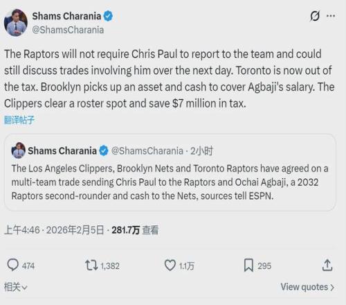 籃網(wǎng)相當(dāng)于用空間吃下阿巴基的合同,得到1個(gè)次輪簽和350萬(wàn)美元的現(xiàn)金補(bǔ)償。快船騰出一個(gè)陣容名額,而且省下700萬(wàn)美元的奢侈稅。猛龍2換1,用年薪638萬(wàn)的阿巴基和次輪簽,換來(lái)年薪363萬(wàn)的保羅,無(wú)需再繳納奢侈稅。