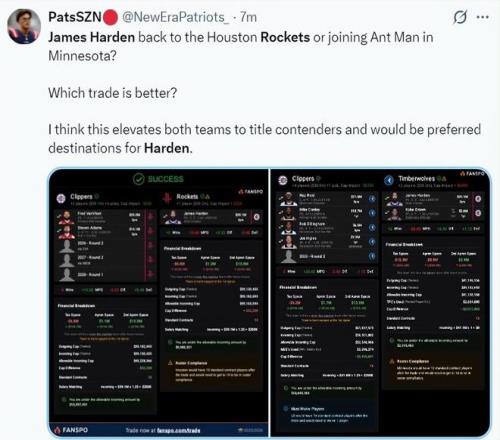 火蜜紛紛發(fā)聲樂意看到哈登回歸!休媒曬巔峰照歡迎:模擬5換1方案