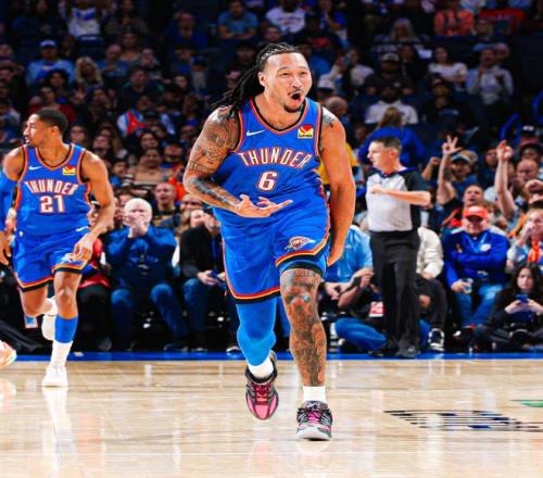 在這一場(chǎng)強(qiáng)強(qiáng)對(duì)話開打之前,雷霆官方宣布亞歷山大腹部受傷,將缺席至全明星周末之后,再加上哈滕、霍姆格倫、多特和卡魯索全部高掛免戰(zhàn)牌,讓雷霆的實(shí)力大打折扣,不過前兩節(jié)維金斯的個(gè)人表現(xiàn)不俗,半場(chǎng)就扔進(jìn)4個(gè)三分球飆下了16分,但是其他隊(duì)友表現(xiàn)不佳,讓雷霆只能帶著15分的劣勢(shì),回到了中場(chǎng)更衣室。 重新回到賽場(chǎng)之后,面對(duì)大比分落后的局面,殘陣的雷霆并沒有放棄,維金斯雖然得分效率下滑,但是成功用傳球帶動(dòng)起了隊(duì)友,四節(jié)戰(zhàn)罷,打出了20+4+6+5的全能表現(xiàn),在他的梳理之下,杰林威廉姆斯砍下了24分和12個(gè)籃板的兩雙,肯里奇威廉姆斯、華萊士和替補(bǔ)登場(chǎng)的巴恩海澤得分也都上雙,這也是雷霆能夠頑強(qiáng)將分差追到個(gè)位數(shù)的原因,可惜缺少球星坐鎮(zhèn),讓雷霆沒有能夠上演大逆轉(zhuǎn)。