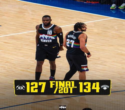 第2個(gè)加時(shí)賽里,約基奇遠(yuǎn)投三不沾,穆雷搶斷布倫森后完成暴扣。布倫森背身單打取分,隨后2罰1中,穆雷、約基奇相繼外線打鐵,布倫森轟進(jìn)三分球。穆雷失誤,沙梅特空切上籃打進(jìn),布魯斯布朗拋投得手。布里奇斯轟進(jìn)遠(yuǎn)投,約基奇3罰1中,隨后搶下前場(chǎng)籃板,小哈達(dá)威轟進(jìn)三分球?yàn)榫蚪鹄m(xù)命。布倫森拋投得分,丹佛落后5分并請(qǐng)求暫停。約基奇外線打鐵,布倫森2罰全中,穆雷遠(yuǎn)投不進(jìn),比賽時(shí)間走完。最終,尼克斯以134比127力擒掘金,得以豪取8連勝。丹佛吞下了3連敗。 兩隊(duì)數(shù)據(jù) 尼克斯隊(duì),唐斯13中9,三分球6中2砍下了24分12板1助,在攻防兩端發(fā)力。阿努諾比17中7得到了20分8板4助、沙梅特15中6得到了16分2板3助、克拉克森7中5得到11分1板1助、米切爾羅賓遜5中5得到了10分8板、布里奇斯8中2,三分球6中1得到5分4板4助、迪亞瓦拉5分、科勒克1分1板4助、麥卡勒1板2助。 尼克斯險(xiǎn)勝掘金,得以斬獲8連勝