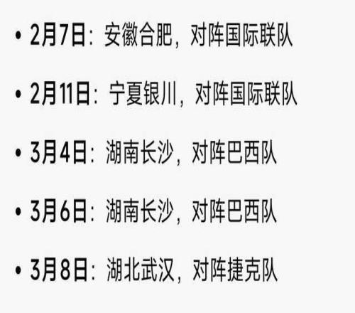 而張子宇,經(jīng)過2024年的U18亞洲杯,2025年的深圳亞洲杯鍛煉,進(jìn)步明顯。宮魯鳴對(duì)她寄予厚望,也給予了針對(duì)性的能力提升。本賽季,張子宇也代表山東女籃打了聯(lián)賽。此番集訓(xùn),張子宇回歸,也是著眼于2月的幾場(chǎng)熱身賽安排,以及3月的武漢世界杯資格。 2月、3月的五場(chǎng)熱身賽時(shí)間如下: