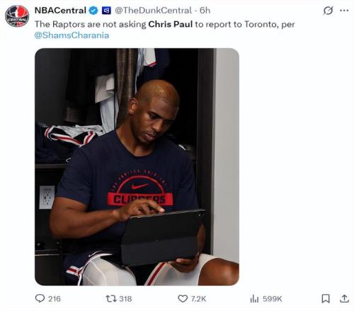 最慘烈是多倫多猛龍并沒(méi)有要求40歲的保羅去報(bào)到,根據(jù)NBA記者克里斯-海恩斯的說(shuō)法,猛龍準(zhǔn)備裁掉40歲的老頭子。 Shams最新的消息是,保羅是否繼續(xù)他的NBA生涯還不確定。(換言之保羅已經(jīng)在考慮直接退役)
