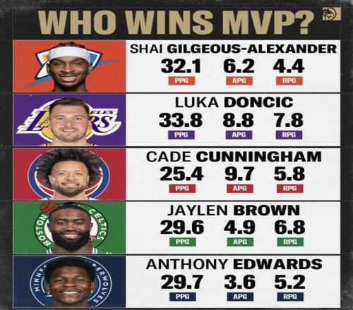 誰有可能獲得MVP第一梯隊(duì):亞歷山大的優(yōu)勢最完整 雷霆38勝10負(fù)排西部第1,這是所有候選里最硬的團(tuán)隊(duì)加分項(xiàng)。 放在同一張對比里,亞歷山大個(gè)人端也夠頂:場均32.1分、6.2次助攻,既有得分爆點(diǎn),也有組織貢獻(xiàn),和“分區(qū)第一的核心”這條線完全對齊。戰(zhàn)績壓得住、個(gè)人輸出也壓得住,這種組合通常最不容易被挑刺。