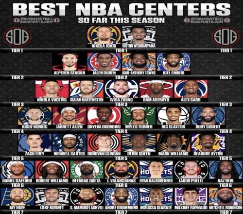 美媒發(fā)布NBA中鋒分檔圖!楊瀚森隊(duì)友克林根在第五檔申京第二檔