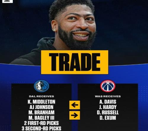 獨(dú)行俠和奇才完成了一筆4換9的大交易,具體方案如下: 獨(dú)行俠送出:戴維斯、哈迪、拉塞爾、??怂_姆; 從奇才換到:米德爾頓、AJ·約翰遜、布蘭納姆、巴格利,附加2個(gè)首輪 + 3個(gè)次輪。 而根據(jù)后續(xù)補(bǔ)充的信息: 2026年的首輪來自雷霆,大概率是首輪末段; 2030年的勇士首輪,附帶前20順位保護(hù)。 簡(jiǎn)單講,表面看是2首輪+3次輪,實(shí)則幾乎沒有什么有價(jià)值的資產(chǎn)。