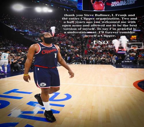 哈登告別快船:我將永遠視自己為快船的一份子