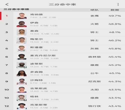 肯納德合同1年1100萬(wàn)美元,今年夏天到期??霞{德職業(yè)生涯三分命中率高達(dá)44.2%,位列NBA歷史第二,僅次于勇士主帥史蒂夫-科爾(45.4%)。