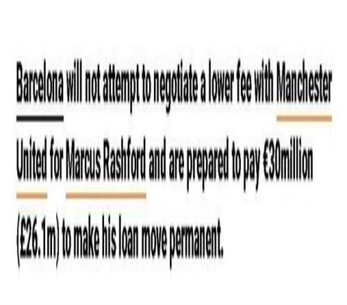 唯一可能導致轉會費發(fā)生變化的情況是,如果曼聯對巴薩陣中任何被認為多余的球員表示出興趣,雙方可以進行交換,但目前還不存在這樣的球員。另一個可能影響巴薩買斷的是該隊換帥,幸好弗里克的帥位似乎頗為穩(wěn)固,而他非常欣賞拉什福德,力主引進。