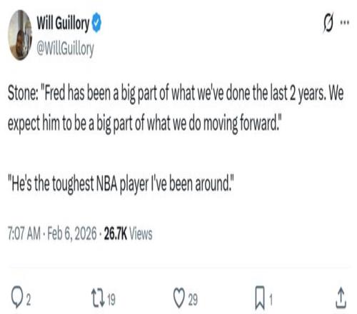 斯通也在發(fā)布會(huì)中確認(rèn)這一點(diǎn):“他(范喬丹)在過(guò)去兩年為球隊(duì)做出重要貢獻(xiàn),我們?nèi)韵嘈潘磥?lái)還會(huì)是球隊(duì)的支柱,他也是我接觸過(guò)最堅(jiān)韌的球員。” NBA