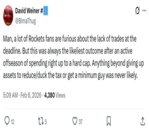 火箭隊(duì)0交易收官!5大原因讓休城放棄補(bǔ)強(qiáng):2人難送走+3人不想賣(mài)